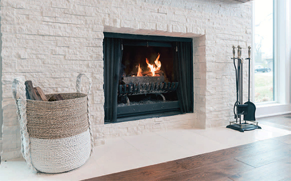 ABOVE: At Suran Built, we’ve been re-facing fireplaces like this one for a while, using stacked stone complemented with reclaimed wooden beams for mantels. The contrast of the new and clean-cut stacked stone against the old, rustic reclaimed beam is attractive to people—it’s fresh and fosters new and old memories and experiences of being in the home. There is something very attractive in that. People enjoy looking for that unique piece of a wood that brings a little history and sense of service. The younger generation, like Ashley and Alex, is seeking that which is true and real, and the mantel is a reminder that “old” is beautiful and full of character.