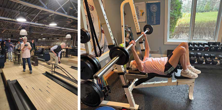 “Years ago, I made a commitment to myself to exercise at least five days a week, with a variety of activities. I have a trainer two days a week lifting weights and working on core, cardio, balance, flexibility, and agility. People are surprised at the weight I can lift. Some days I work in the gym on treadmill, aerobic machines, and other equipment. Variety is important.