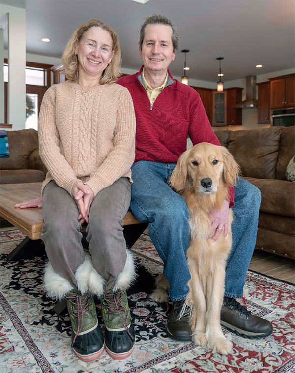 Wisconsin farmhouse owners Mary and Bill Sneed and their dog, Summer.