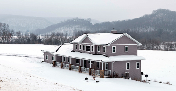 The Sneed’s recently-built Wisconsin farmhouse is in the southwestern region of the Midwest’s Driftless Area. Never touched by glaciers, the land here is characterized bybeautifully sculpted topography and an abundance of wildlife. Set atop a hillside in the middle of 160 acres, it’s the ideal getaway place for rest or recreation.